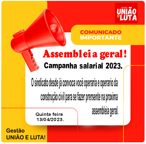 O sindicato dos trabalhadores da construção civil convoca você operário para se fazer presente na…